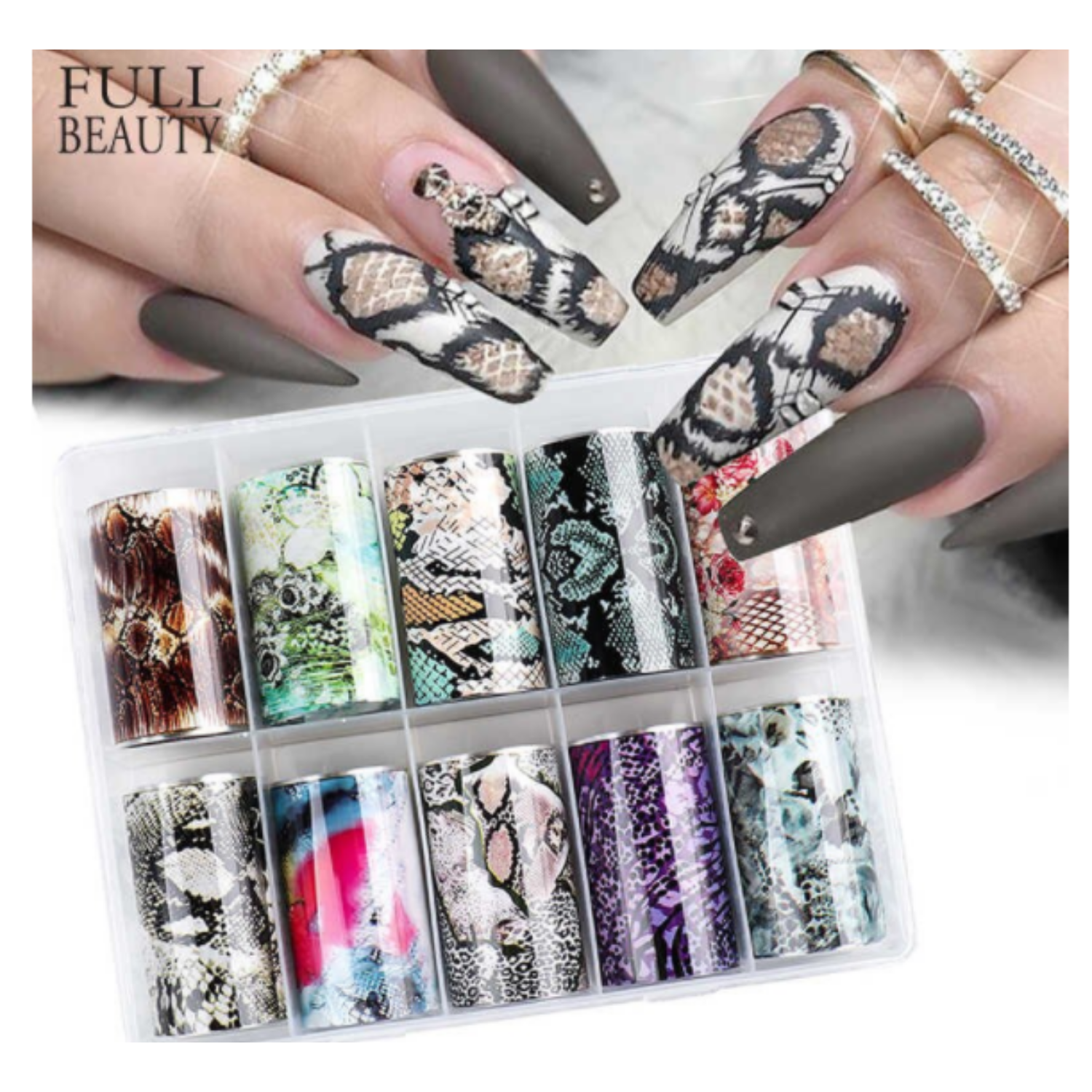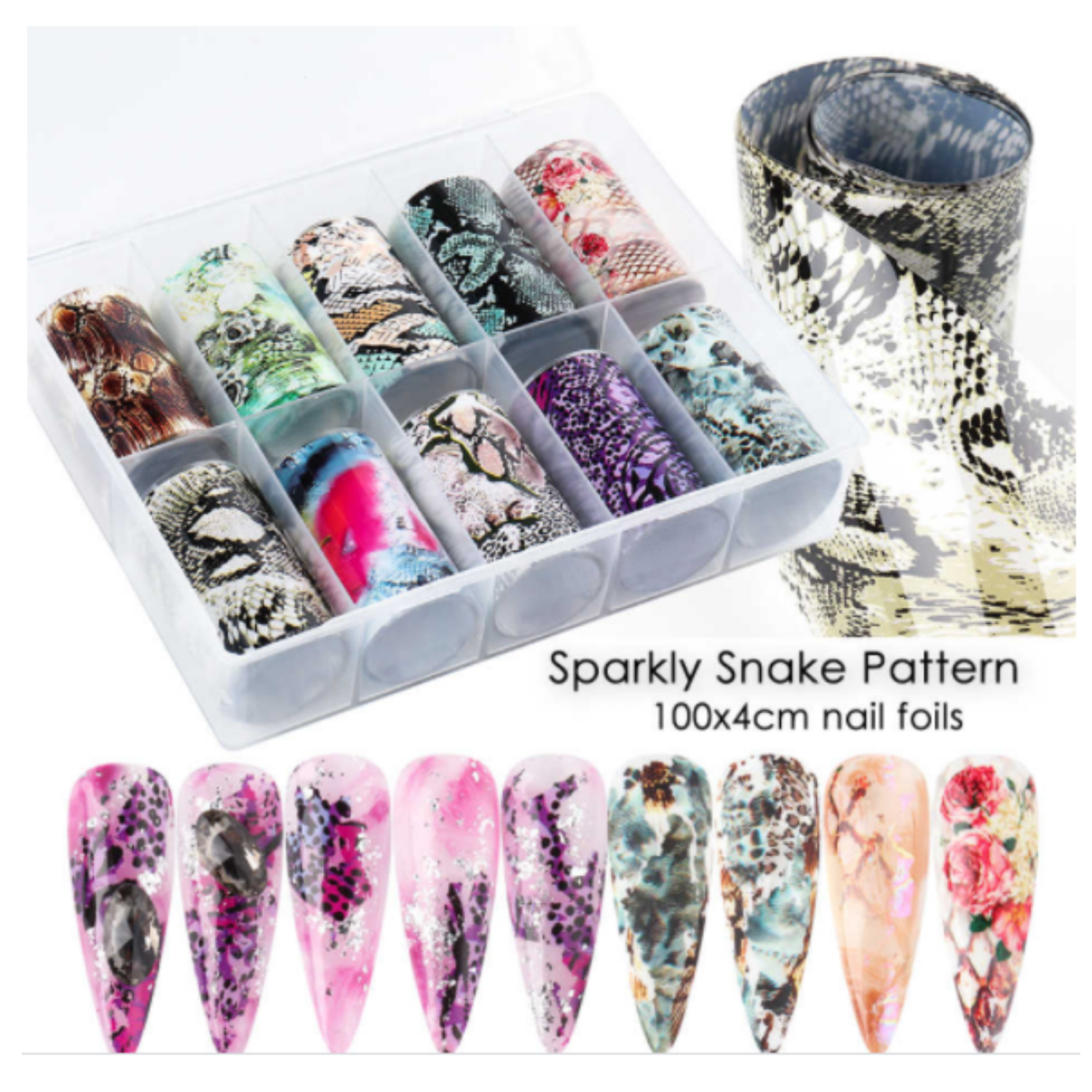 Foil de Serpiente Para Decoración de Uñas Caja de 10 pzs