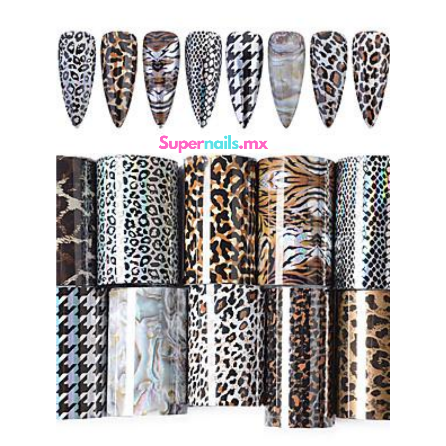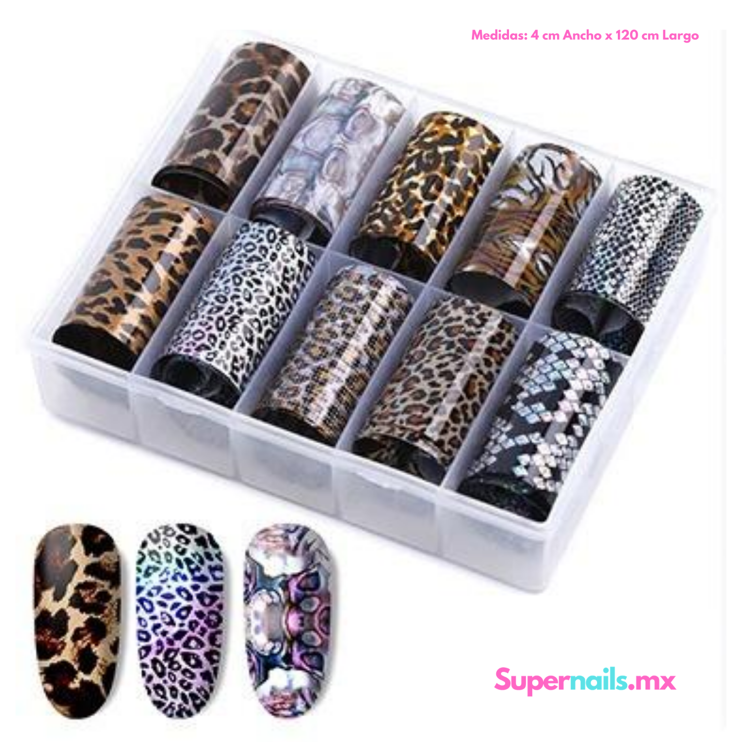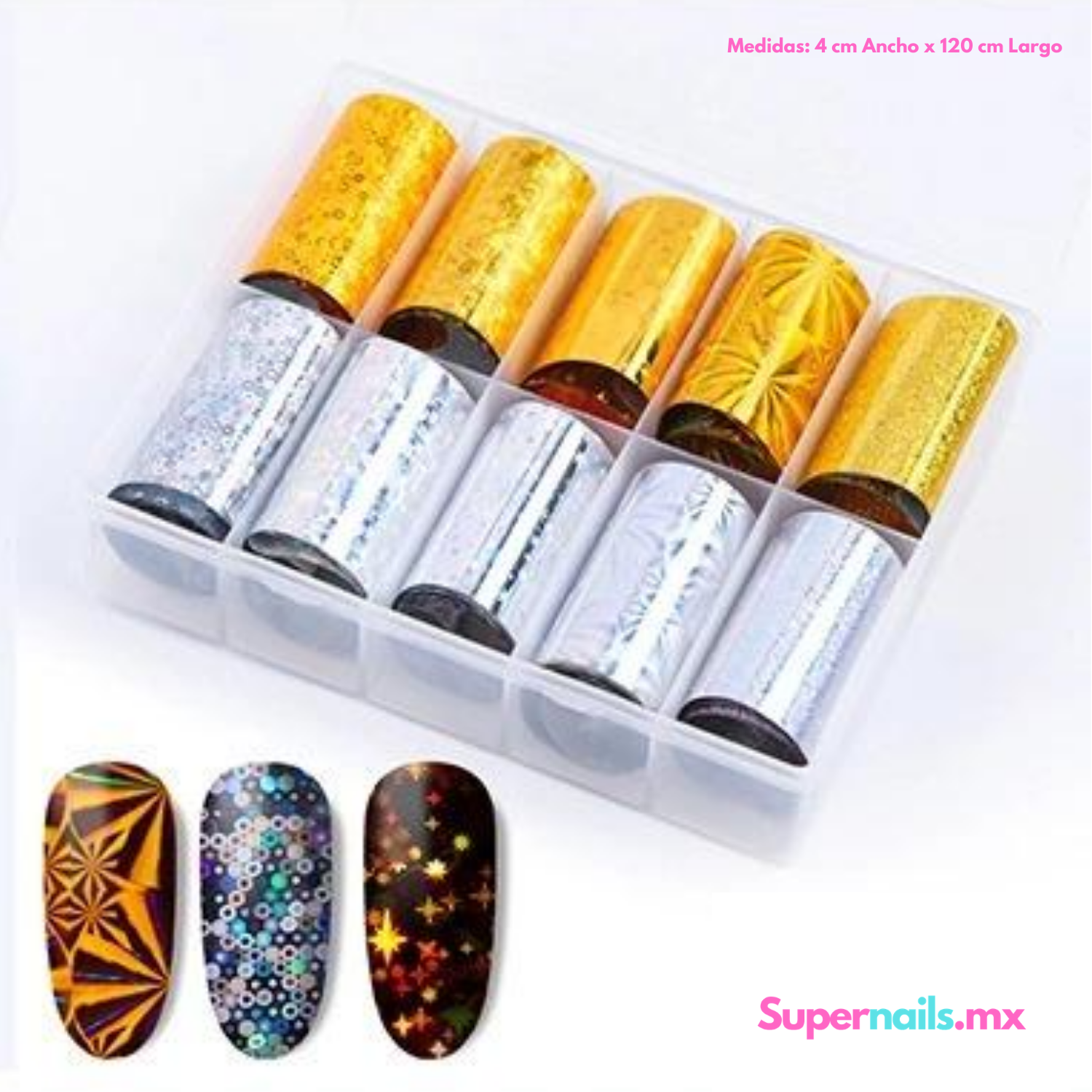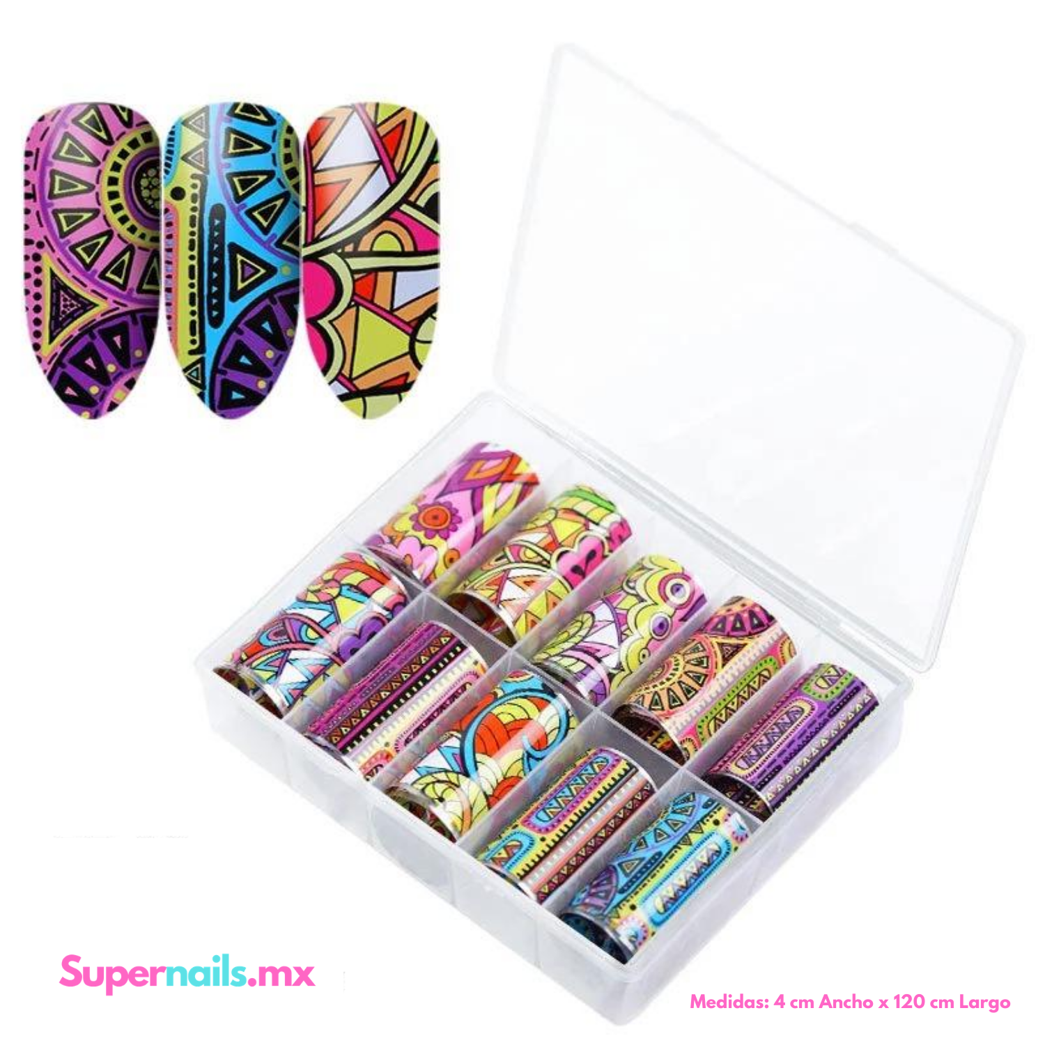 Foil para Decoracion de Uñas Caja de 10pzs Escoge tu Diseño