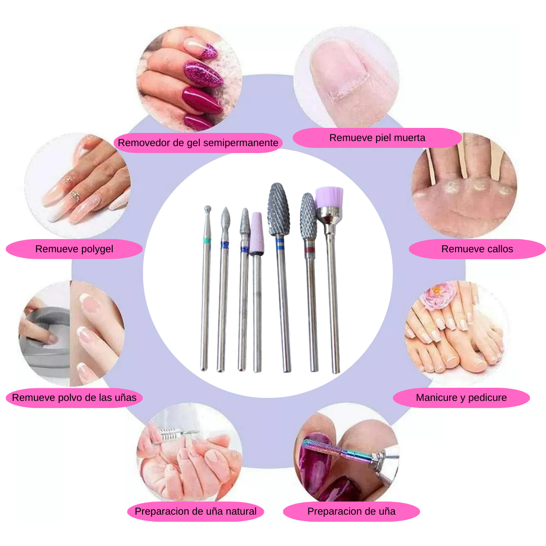 Kit de 7 Puntas para Drill pulidor de uñas con base