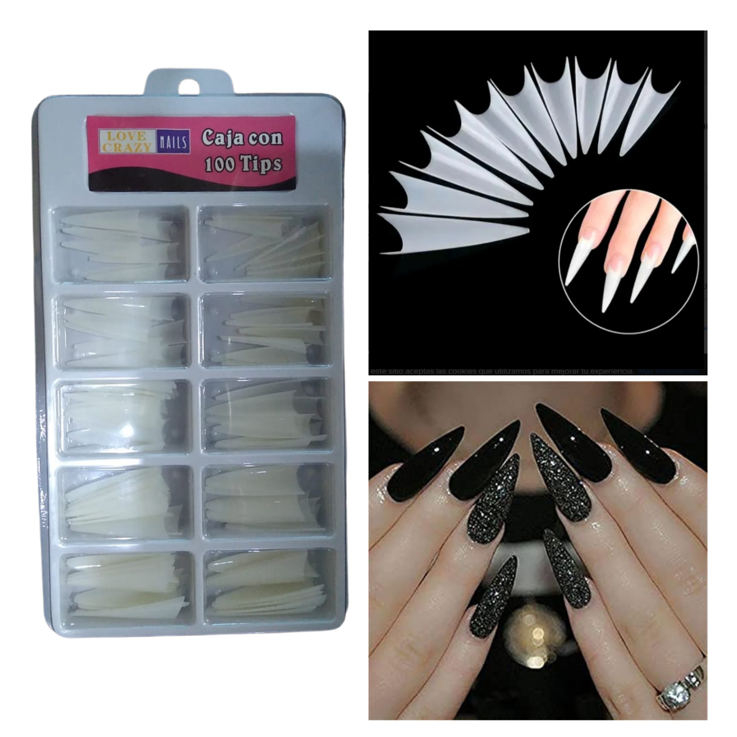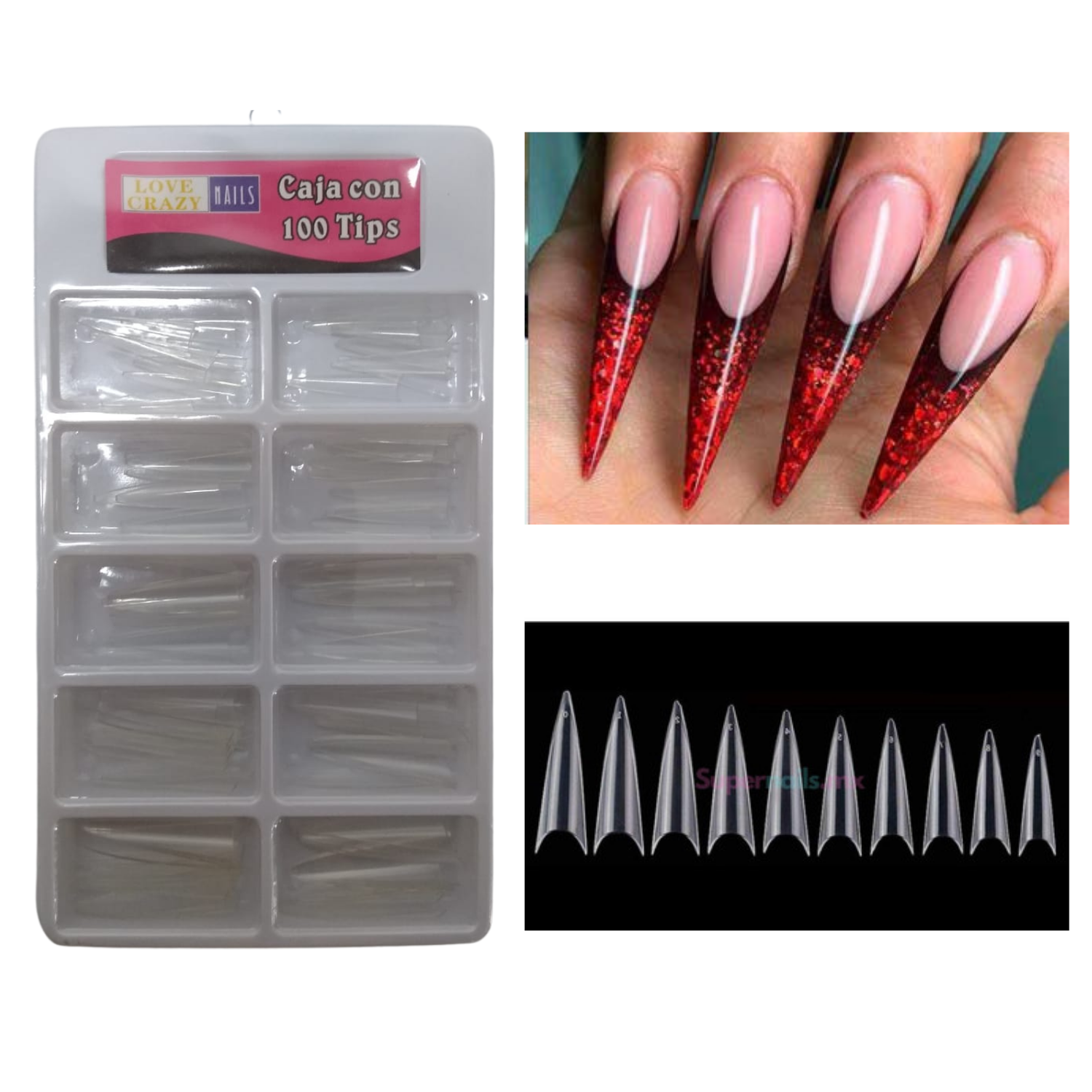 Tip Estileto Extra Largo Caja con 100 Piezas Natural o Cristal