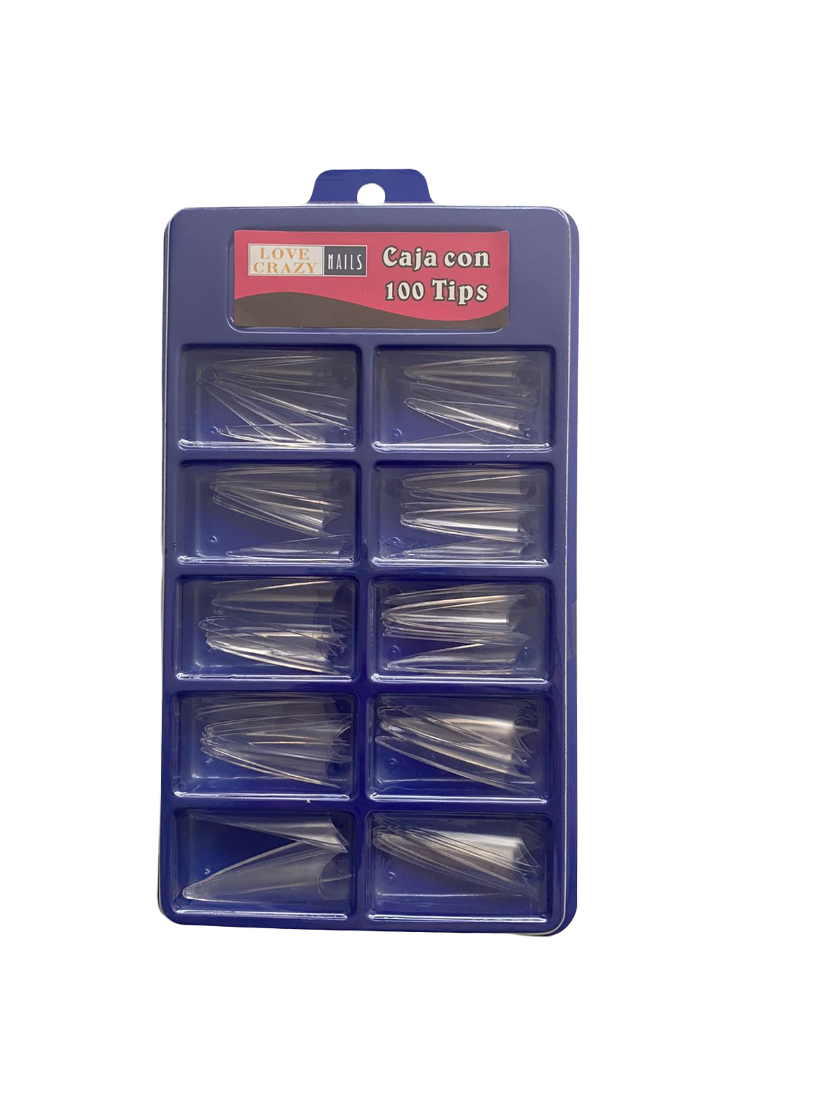 Tips Estileto XL Curvatura "C" con 100 Piezas Cristal